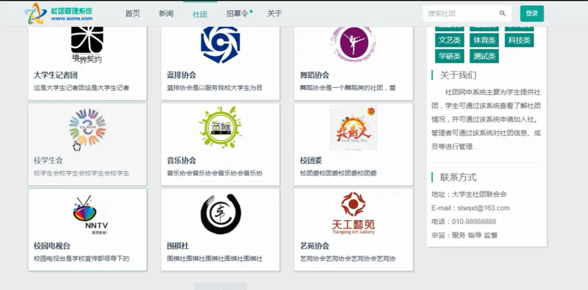 基于SSM的大学生社团管理系统, 可以自己改(SpringBoot)。
