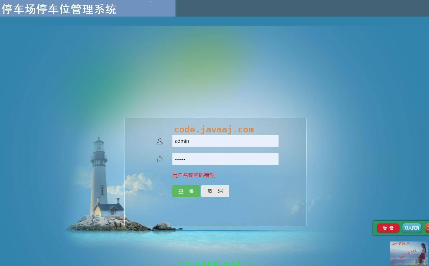 SpringBoot停车场停车位管理系统-管理员角色-管理员登录↓↓